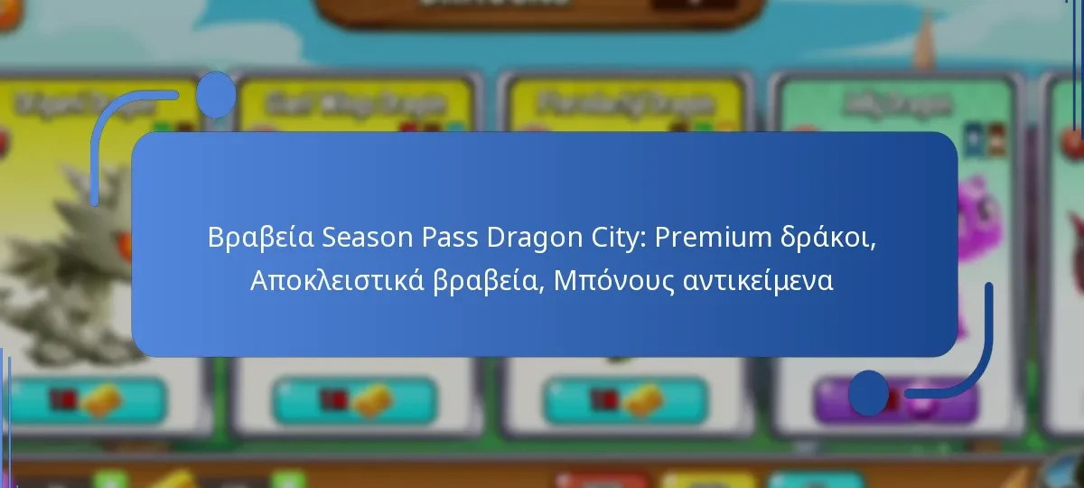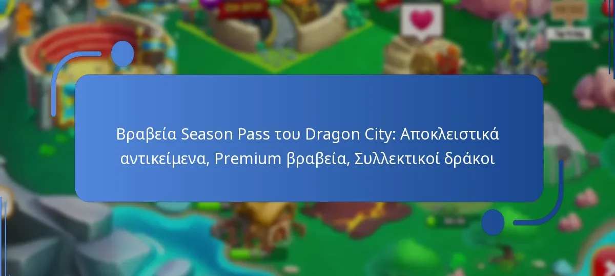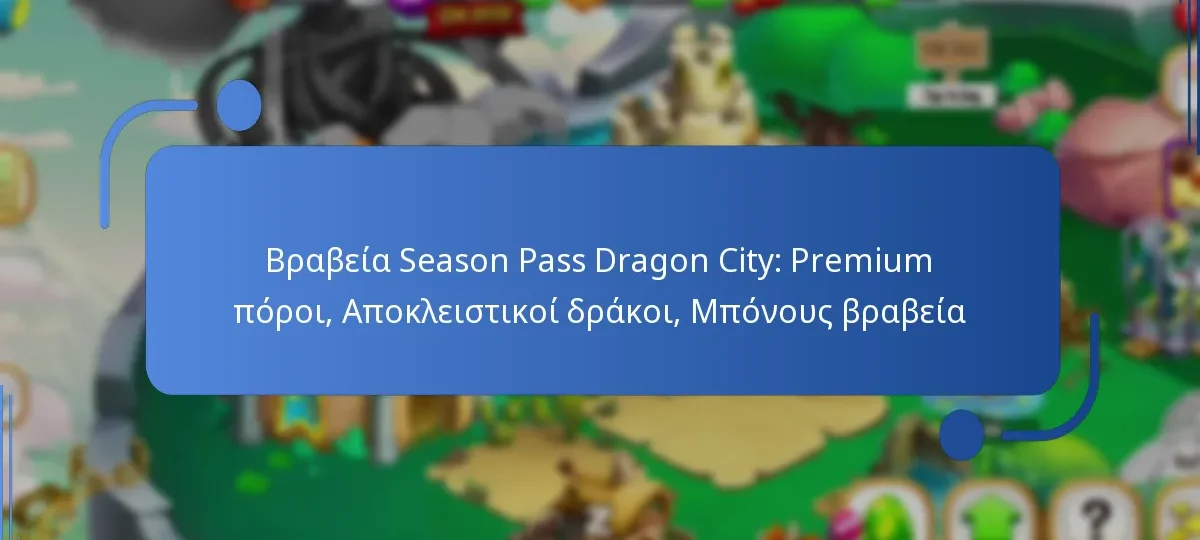 Το season pass στην Dragon City προσφέρει μια ποικιλία ανταμοιβών, συμπεριλαμβανομένων αποκλειστικών δράκων, πόρων και βραβευμένης νομισματικής ανταμοιβής. Οι παίκτες μπορούν να ξεκλειδώσουν αυτές τις ανταμοιβές ολοκληρώνοντας συγκεκριμένες αποστολές και προκλήσεις κατά τη διάρκεια της σεζόν.