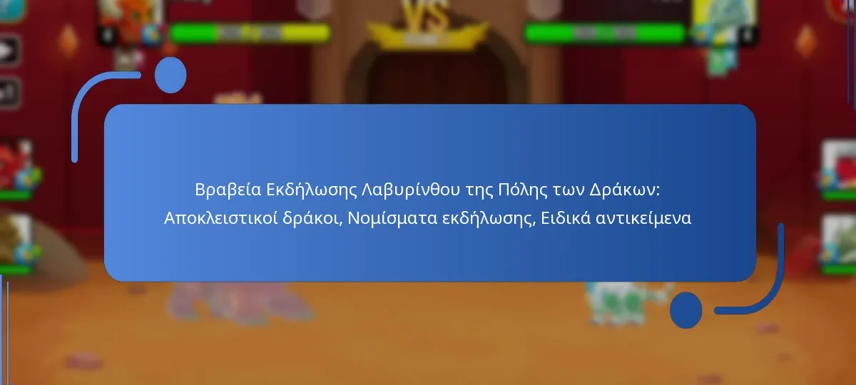 Η εκδήλωση του Λαβυρίνθου στην Πόλη των Δράκων προσφέρει αποκλειστικούς δράκους, νόμισμα εκδήλωσης και ειδικά αντικείμενα που ενισχύουν την εμπειρία παιχνιδιού. Οι παίκτες μπορούν να κερδίσουν αυτές τις ανταμοιβές πλοηγούμενοι στον λαβύρινθο και ολοκληρώνοντας διάφορες προκλήσεις κατά τη διάρκεια της εκδήλωσης.