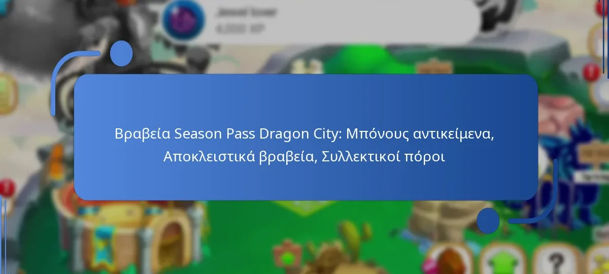 Το Season Pass της Dragon City προσφέρει στους παίκτες μια ποικιλία ανταμοιβών που ενισχύουν το παιχνίδι και παρέχουν αποκλειστικά αντικείμενα. Αυτές οι ανταμοιβές περιλαμβάνουν μπόνους αντικείμενα, αποκλειστικές ανταμοιβές για τους κατόχους του pass και συλλεκτικούς πόρους που είναι κρίσιμοι για την πρόοδο στο παιχνίδι.
