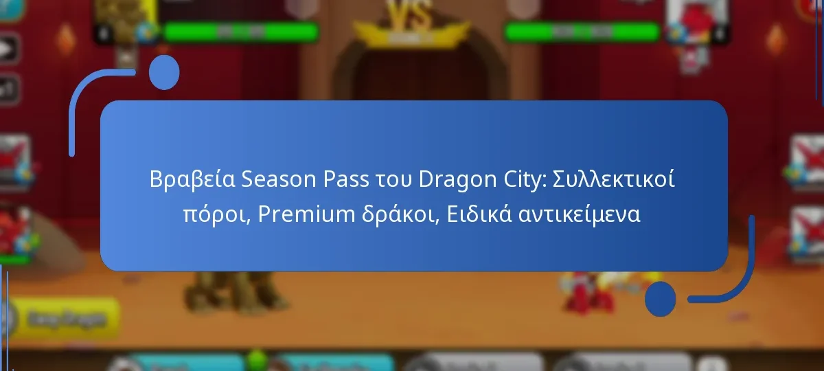 Το Season Pass στη Dragon City προσφέρει μια ποικιλία ειδικών αντικειμένων που ενισχύουν την εμπειρία παιχνιδιού, συμπεριλαμβανομένων συλλεκτικών πόρων, premium δράκων και μοναδικών αντικειμένων. Αυτές οι ανταμοιβές έχουν σχεδιαστεί για να βελτιώσουν την εμπειρία παιχνιδιού σας και να παρέχουν πλεονεκτήματα σε μάχες και αναπαραγωγή.