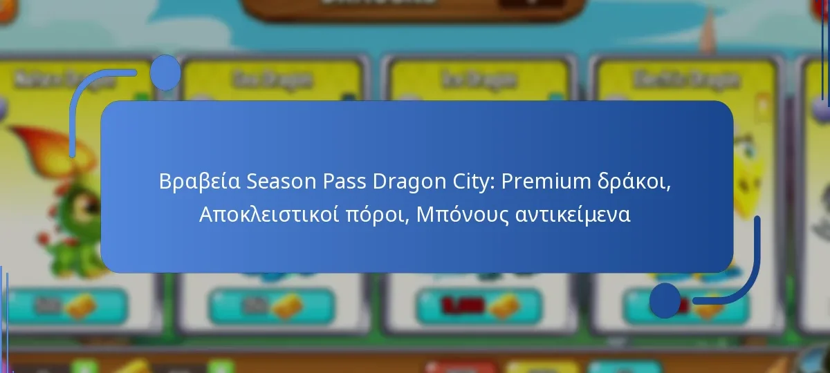 Το Season Pass της Dragon City προσφέρει μια ποικιλία ανταμοιβών που ενισχύουν την εμπειρία παιχνιδιού, συμπεριλαμβανομένων premium δράκων, αποκλειστικών πόρων και μπόνους αντικειμένων. Αυτές οι ανταμοιβές έχουν σχεδιαστεί για να παρέχουν στους παίκτες μοναδικά πλεονεκτήματα και να εμπλουτίσουν την εμπειρία παιχνιδιού τους.